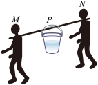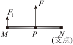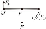 11. 如图,在植树活动中,两位同学用竹竿抬水。水桶挂在水平竹竿的P处,与前、后同学的距离分别为PM、PN,水桶对竹竿的作用力为F,其中PM、PN及F的大小均已知,竹竿的重力忽略不计。若要分析前面同学抬水的力F1的大小,下列建构的杠杆示意图正确的是( )