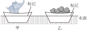 13. 曹冲称象的故事广为流传。如图,称象时,先让象站在船上,在船身与水面交界处做上标记。让象上岸后,再将石头装入船中,直至船身上的标记与水面重合,所装石头的质量即为大象的质量。下列说法正确的是( )