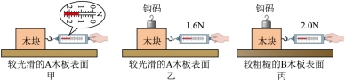 (2)图为小明做实验时的情景,用弹簧测力计水平拉着木块沿水平长木板做匀速直线运动,根据_______知识,可知木块受到的滑动摩擦力大小等于弹簧测力计拉力的大小。甲实验中,木块受到的滑动摩擦力大小为_______N。