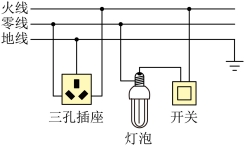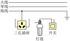 16. 如图是家庭电路的一部分,三孔插座可单独工作,开关控制灯泡。请用笔画线表示导线,将对应的电路连接完整,并符合安全用电原则。