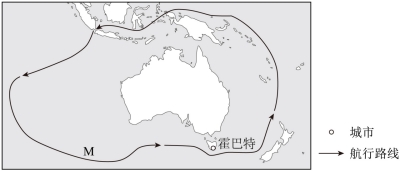 历史上人们曾认为澳大利亚大陆和南极大陆连接在一起。1643年航海家完成环绕澳大利亚航行后,发现两大陆隔海相望。如今,澳大利亚成为探索南极的重要补给站之一。下图示意航海家1642—1643年的航行路线。完成下面小题。