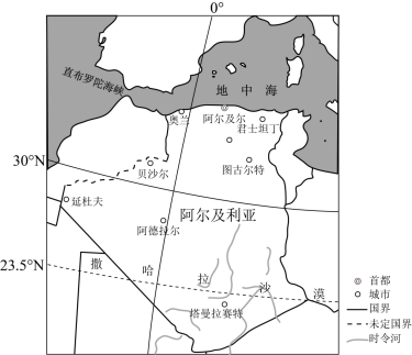 阿尔及利亚位于非洲北部。下图示意阿尔及利亚及周边区域。