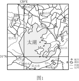 太湖是我国长江三角洲地区重要的湿地。自20世纪八九十年代以来,太湖周边经济飞速发展,湿地生态环境问题也越来越受到重视。图1示意太湖周边水系和城市分布。