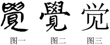26. 下面是“觉”字在三个不同时期的写法,从图一到图三依次选自湖北云梦睡虎地秦简、唐代柳公权《玄秘塔碑》和《通用规范汉字表》。