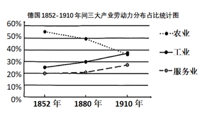 (2)根据上述信息并结合所学知识,简析德国1852—1910年间三大产业劳动力分布占比发生变化