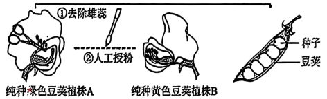 (2)一段时间后,植株A结出了果实。果实内种子的胚由_________发育而成,种子外的豆荚由_________发育而成。