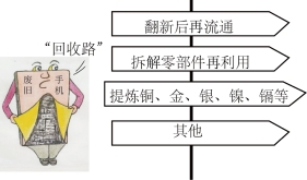 据统计,我国平均每年产生6亿至7亿部废旧手机,其回收利用潜力巨大,相关产业发展正在逐步规范。下图示意废旧手机的“回收路”。据此完成下面小题。