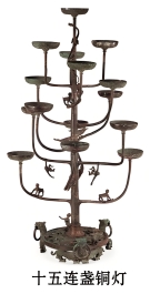 ①十五连盏铜灯造型如茂盛的大树,枝头的十五只灯盘错落有致,枝干上的动物形象栩栩如生。②这件器物工艺精湛,是泥范铸造,经铸接、榫卯接和焊接成形。③灯体结构科学,有利于保持灯的平衡与稳定。④总之,这件艺术瑰宝造型生动,结构科学,工艺精湛,闪烁着中华民族的创造之光。