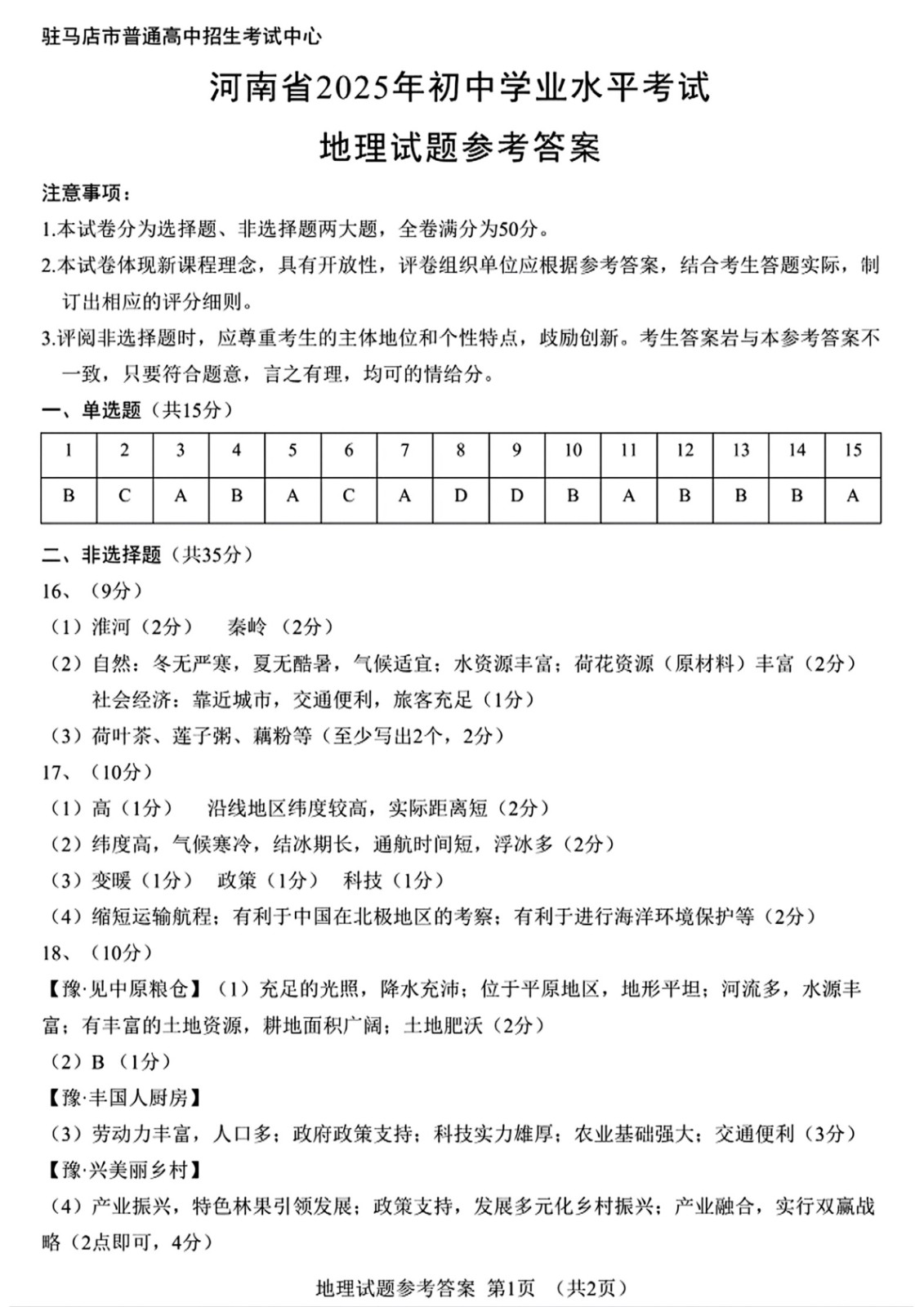 2025年河南中考地理真题及答案图片版