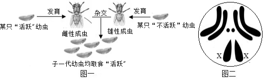 (3)图一中亲代是“活跃”幼虫和“不活跃”幼虫,子一代幼虫均取食“活跃”,表明“活跃”是显性性状,“不活跃”是隐性性状,所以取食“活跃”为显性性状。遗传图解如图所示: