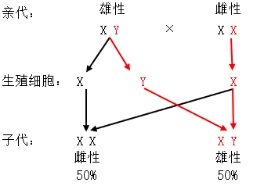 由图二可知,果蝇性别决定方式与人类相同,为XY型,则雌性果蝇的性染色体为XX,雄性果蝇的性染色体为XY,所以理论上子一代幼虫中雌雄比例为1:1,遗传图解如图所示: