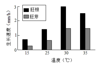 6.为研究玉米种子萌发的适宜温度,研究人员将玉米种子随机平分为四组,置于不同温度下培养,其他条件保持一致,测算胚根和胚芽的生长速度,结果如下图所示。下列说法错误的是( )