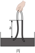(3)将PU耐压透明软管注满镓铟锡液态合金后,手持软管中部缓慢上提,保持两端管口始终在流态合金液面以下,直至软管中液柱分离,如图丙所示。测得管内外液面高度差h为160cm,小组测得的大气压强为 Pa。(取g=10N/kg)