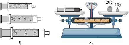 (1)测量密度前,为了提高液体体积测量的精确度,应在图中所示的三种注射器中选择 (选填“5mL”“20mL”或“30mL”)的注射器。