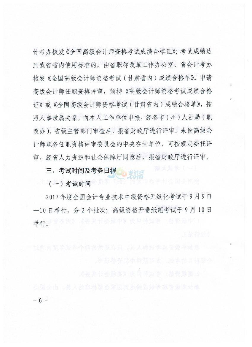 甘肃2017中级会计职称考务安排及有关事项通知