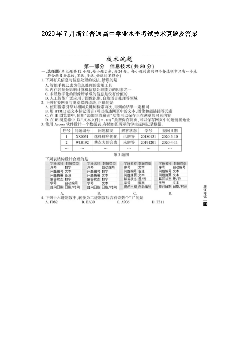 2020年7月浙江普通高中学业水平考试技术真题及答案