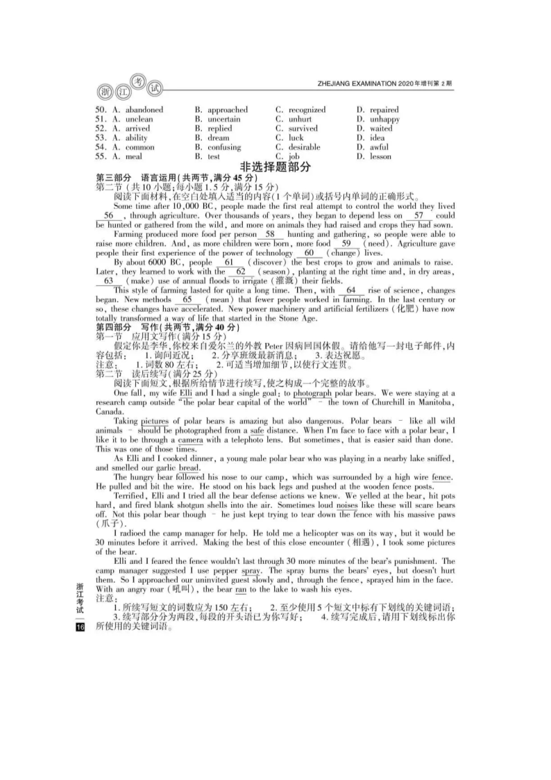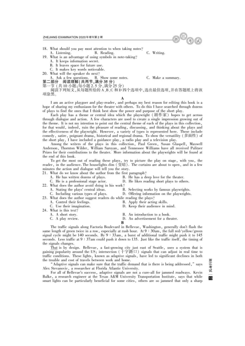 2020年7月浙江普通高中学业水平考试英语真题及答案