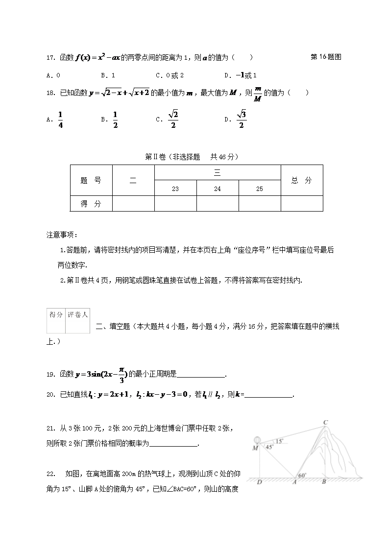 本试卷分为第Ⅰ卷和第Ⅱ卷两部分,第Ⅰ卷为选择题,共2页;第Ⅱ卷为非选择题,共4页.全卷共25小题,满分100分.考试时间为90分钟.