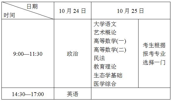(二)专科起点升本科考试时间表