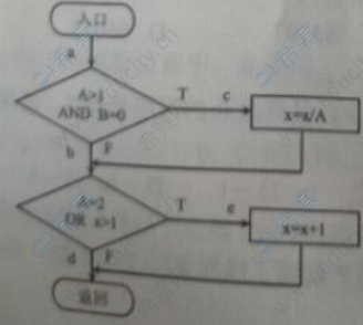 31、用白盒测试技术对下面流程图进行测试,设计的测试用例如下表所示。至少采用测试用例( )才可以实现语句覆盖;至少采用测试用例( )才可以实现路径覆盖。