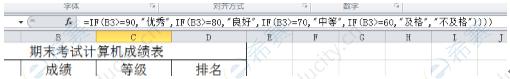 2、成绩≥90为优秀,90>成绩≥80为良好,80>成绩≥70为中等,70>成绩≥60为合格,成绩<60为不及格,在等级列相应单元格内用IF函数计算每个学生的等级。
