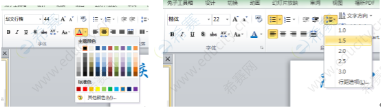 1、标题设置为44磅,华文行楷、蓝色;正文内容设置为24磅、楷体、黑色、1.5倍行间距。