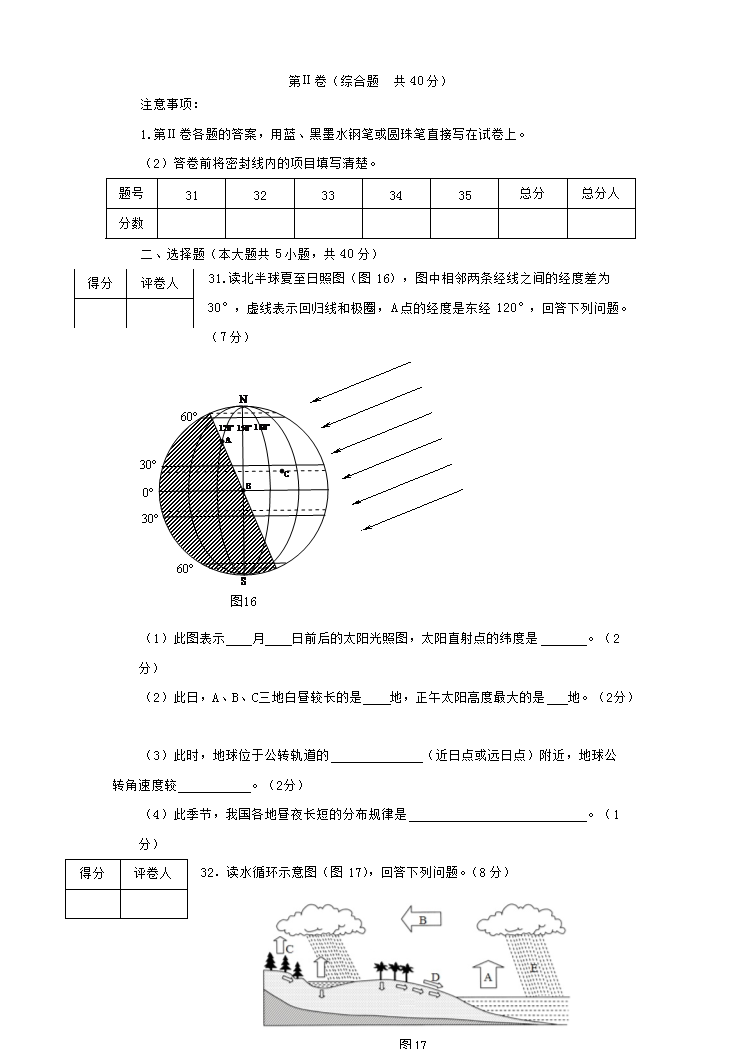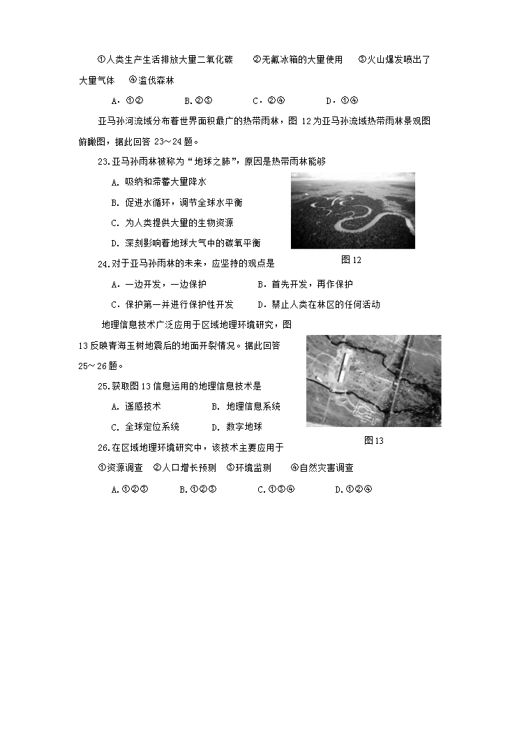 2012年四川普通高中会考地理真题及答案