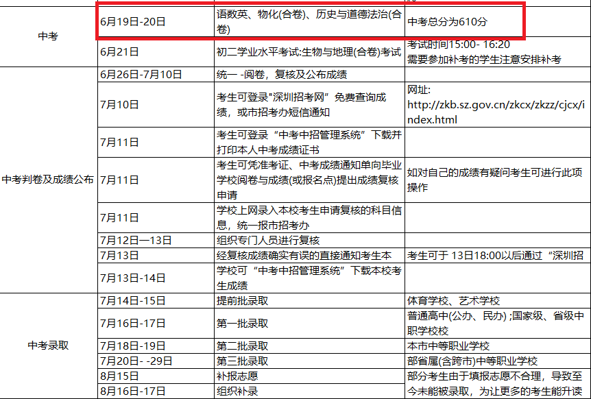 从深圳招考网了解到,2021深圳中考时间公布,深圳中考具体时间2021具体安排在6月19日-20日期间举行。