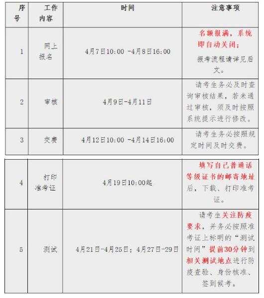 为满足广大社会考生需求,做好相关工作,根据《普通话水平测试管理规定》,结合天津市新冠肺炎疫情防控工作要求,市教科院将以月初报名、月中审核、月末测试的常规形式组织我市社会人员的普通话水平报考工作。现将4月份普通话水平测试安排通知如下: