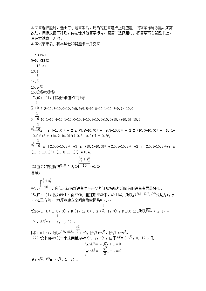 2021年新疆高考理科数学真题及答案