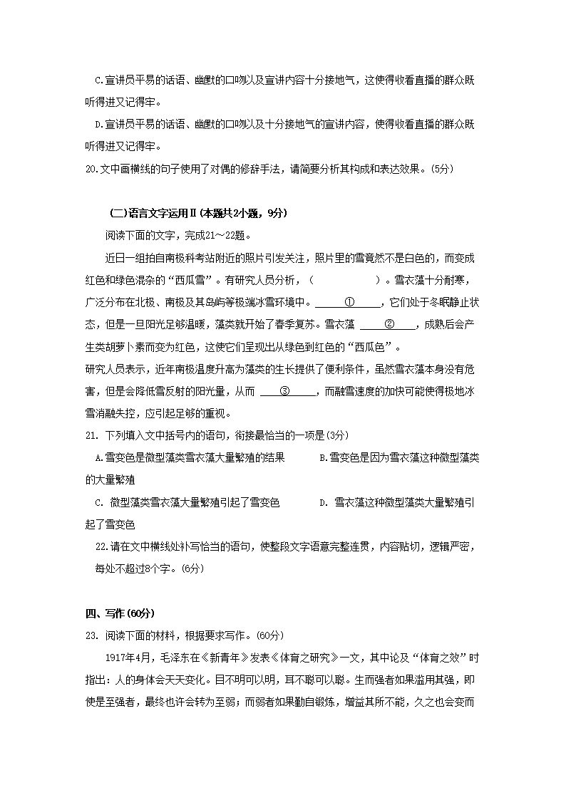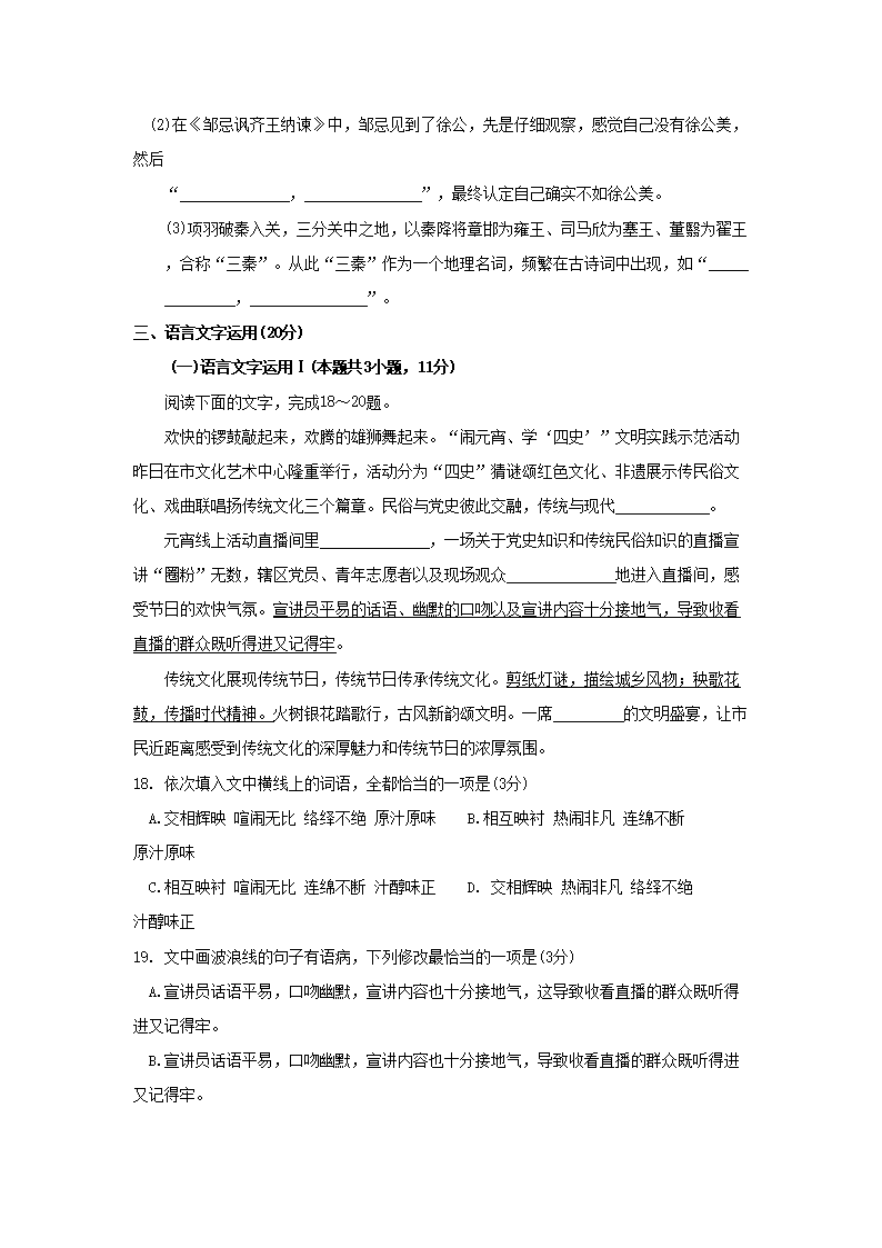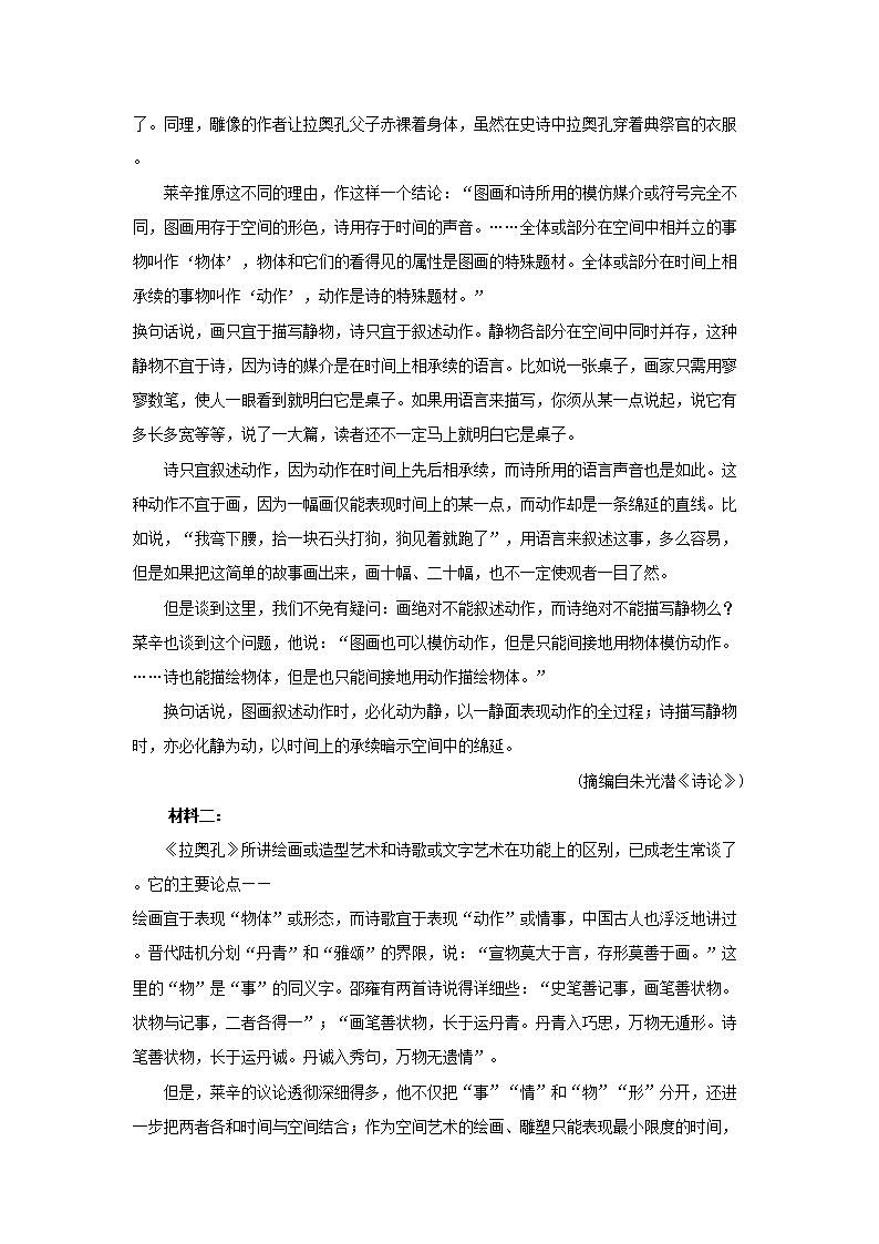 2021年高考语文真题试题(新高考Ⅰ卷)