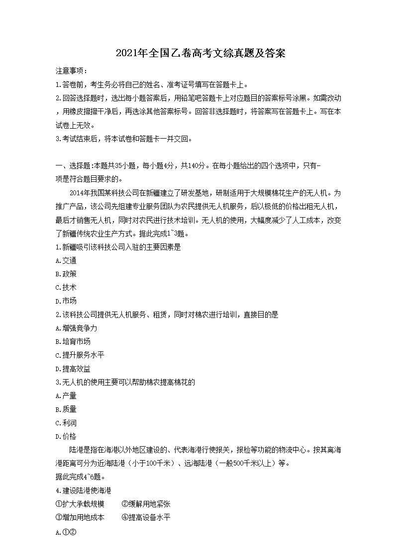 2021年全国乙卷高考文综真题及答案已公布,小编已为大家整理如下,本文内容包括2021年全国乙卷高考文综真题及答案。