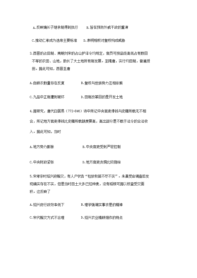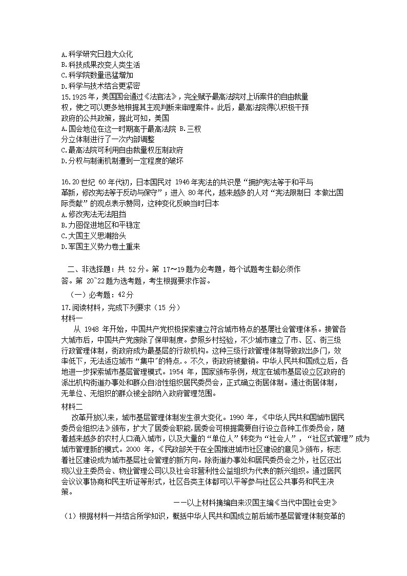 2021年湖南普通高中学业水平选择性考试历史真题及答案