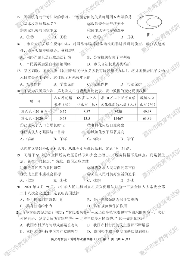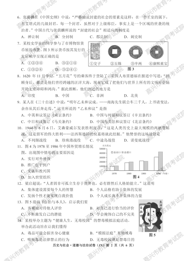 2021年浙江嘉兴市中考历史与社会.道德与法治试卷及答案