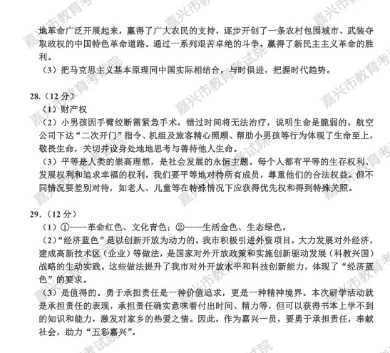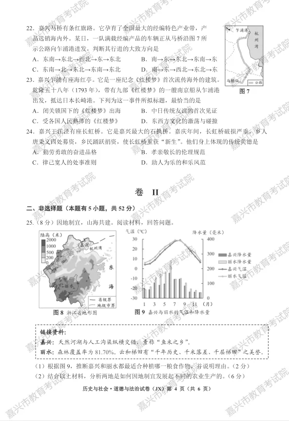 2023年浙江嘉兴中考历史与社会.道德与法治试题及答案