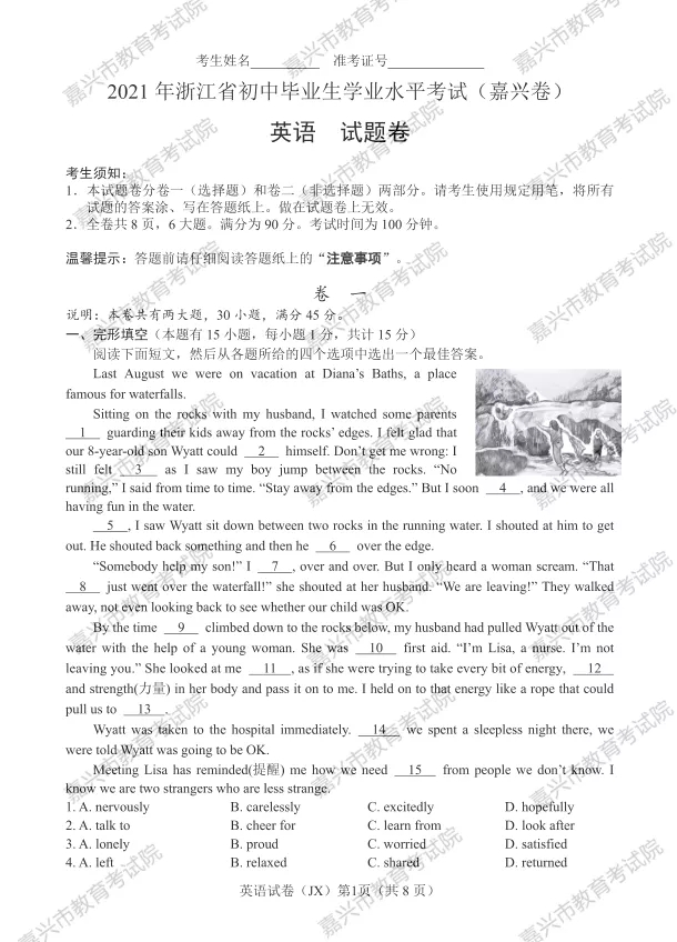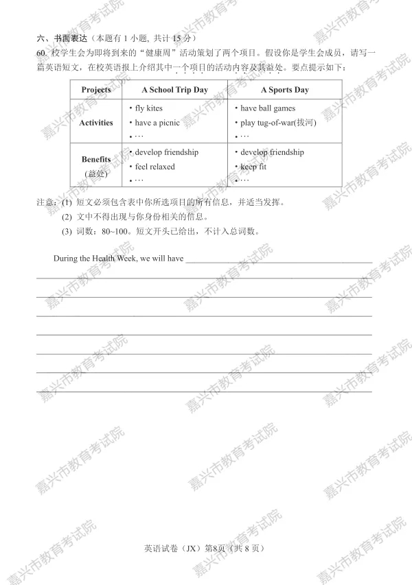 2023年浙江嘉兴中考历史与社会.道德与法治试题及答案