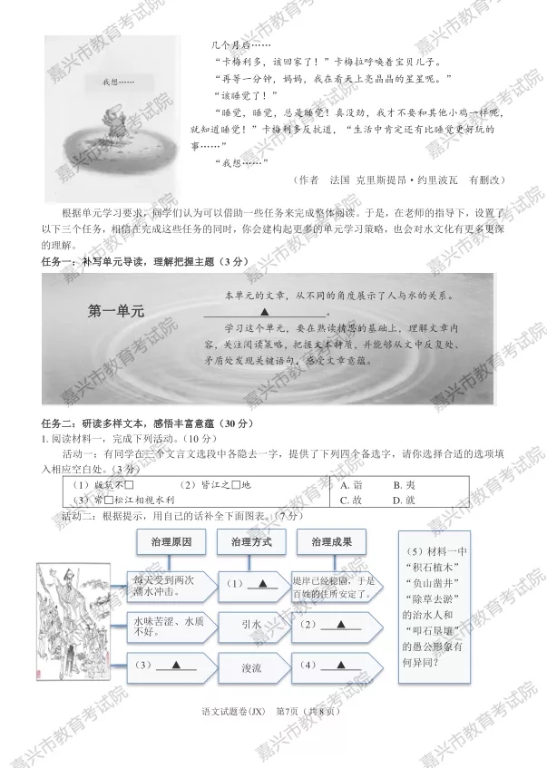 2023年浙江嘉兴中考历史与社会.道德与法治试题及答案