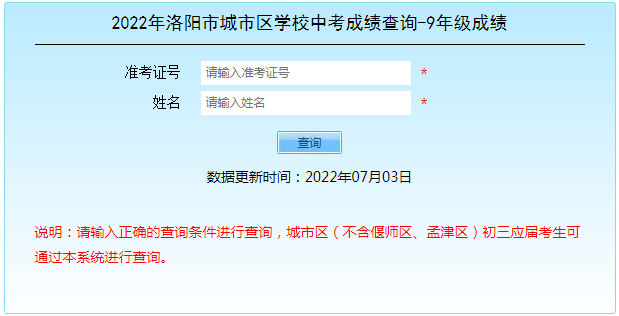 2022年河南洛阳中考成绩查询入口(7月4日开通)