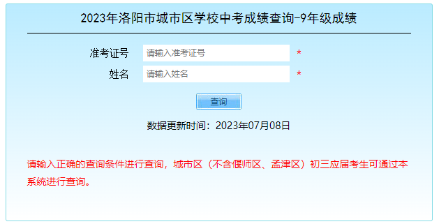 2023年河南洛阳中考成绩查询网站入口:http://lyjyj.ly.gov.cn/