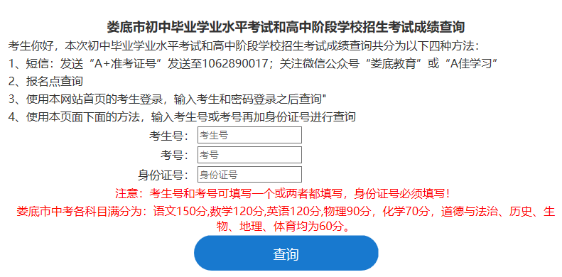 2023年湖南娄底中考成绩查询网站入口:http://218.76.140.230/ldzz/ldzzcjcxw.asp