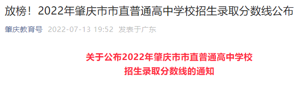 2022年肇庆市市直普通高中学校招生录取分数线公布