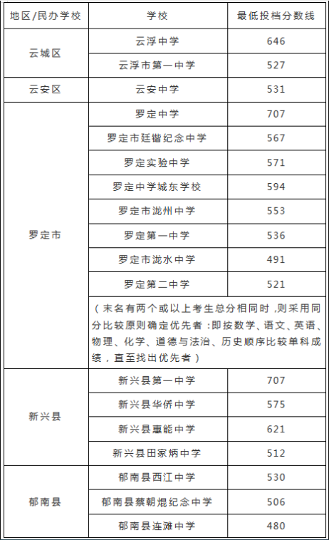 2022年云浮市普通高中学校投档分数线公布