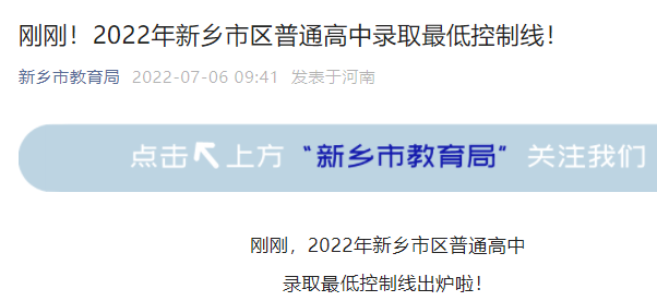 从新乡市教育局得知,2022年新乡市区普通高中录取最低控制分数线已公布。刚刚,2022年新乡市区普通高中录取最低控制线出炉啦!普通类:389分艺术类:350分体育类:280分...2022-07-06