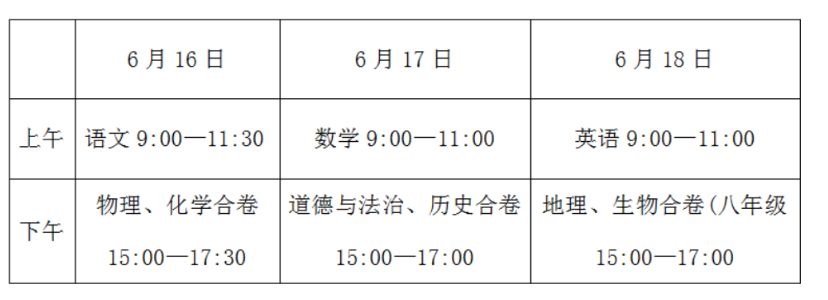 甘肃酒泉市2024年中考时间及科目安排:6月16日-18日