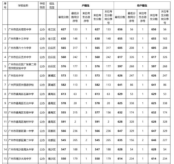 2023年广州市高中阶段学校招生第四批次普通高中学校录取工作于7月15日进行,现将录取分数公布如下:一、公办普通高中学校二、民办普通高中学校、中外合作办学项目广州市招生考试委员会办公室202...2023-07-15
