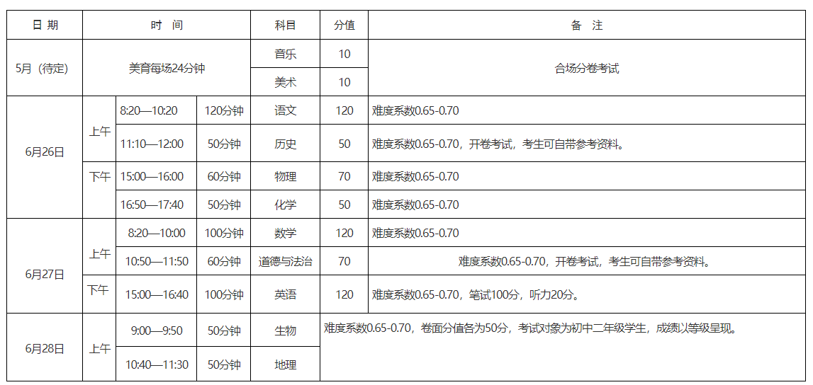 2023年河南新乡中考时间为6月26日-6月28日,2023年中招学业考试成绩总分值为720分,2023年我市中招考试科目为:语文、数学、英语、物理、化学、道德与法治、历史、美育(音乐、美术)、生物、地...2023-05-30