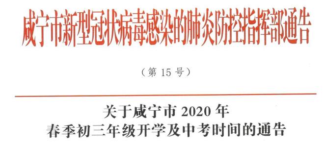 咸宁市新型冠状病毒感染肺炎防控指挥部发布了《关于咸宁市2020年春季初三年级开学及中考时间的通告》,确定了初三年级开学时间和中考时间的安排。为安全有序恢复教育教学秩序,经咸宁市新冠肺炎...2020-07-01