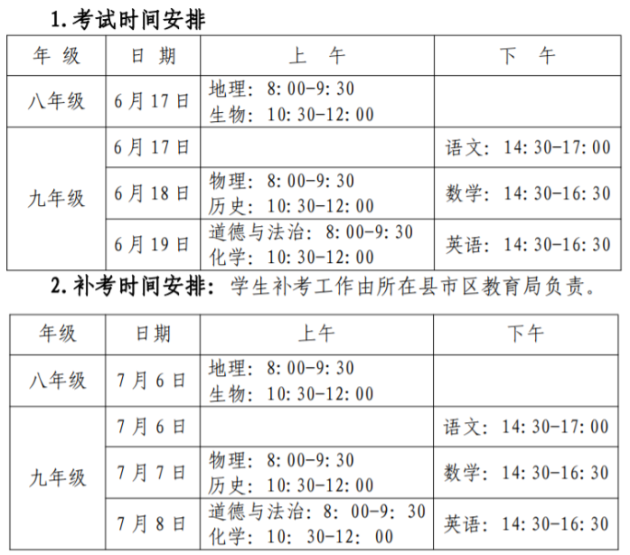 湖南株洲中考时间2023年时间表(6月17日-19日)