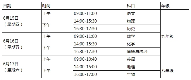 2019年山东临沂中考考试时间及科目安排 考试时间:6月14日至6月16日 考试科目:语文、数学、英语、物理、思想品德、化学、历史、地理、生物 ...2019-05-22