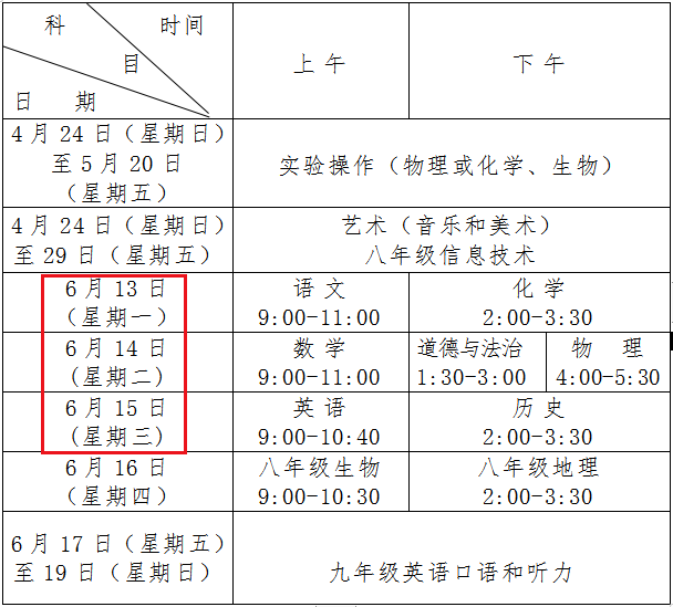 青岛中考时间2022年具体时间安排(6月13日-15日)
